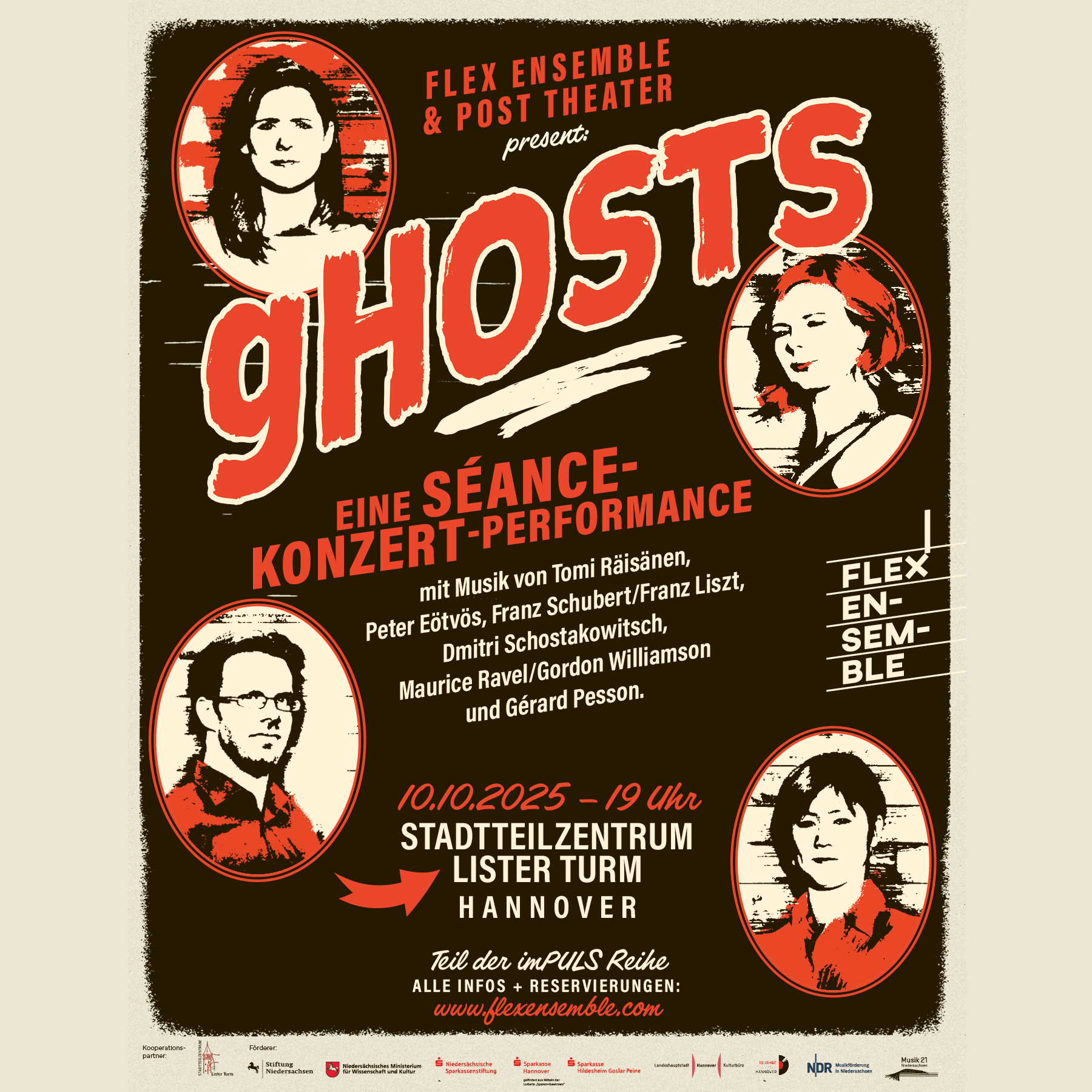 Can a music concert be a séance? The historic Memphis Quartet had worked on this question before. Flex Ensemble has researched the legendary 1950ies quartet and follows their attempts to build a bridge to the afterlife – with music. Their material for this daring construction include Schubert, Shostakovich, Räisänen, Eötvös, Williamson and Pesson.