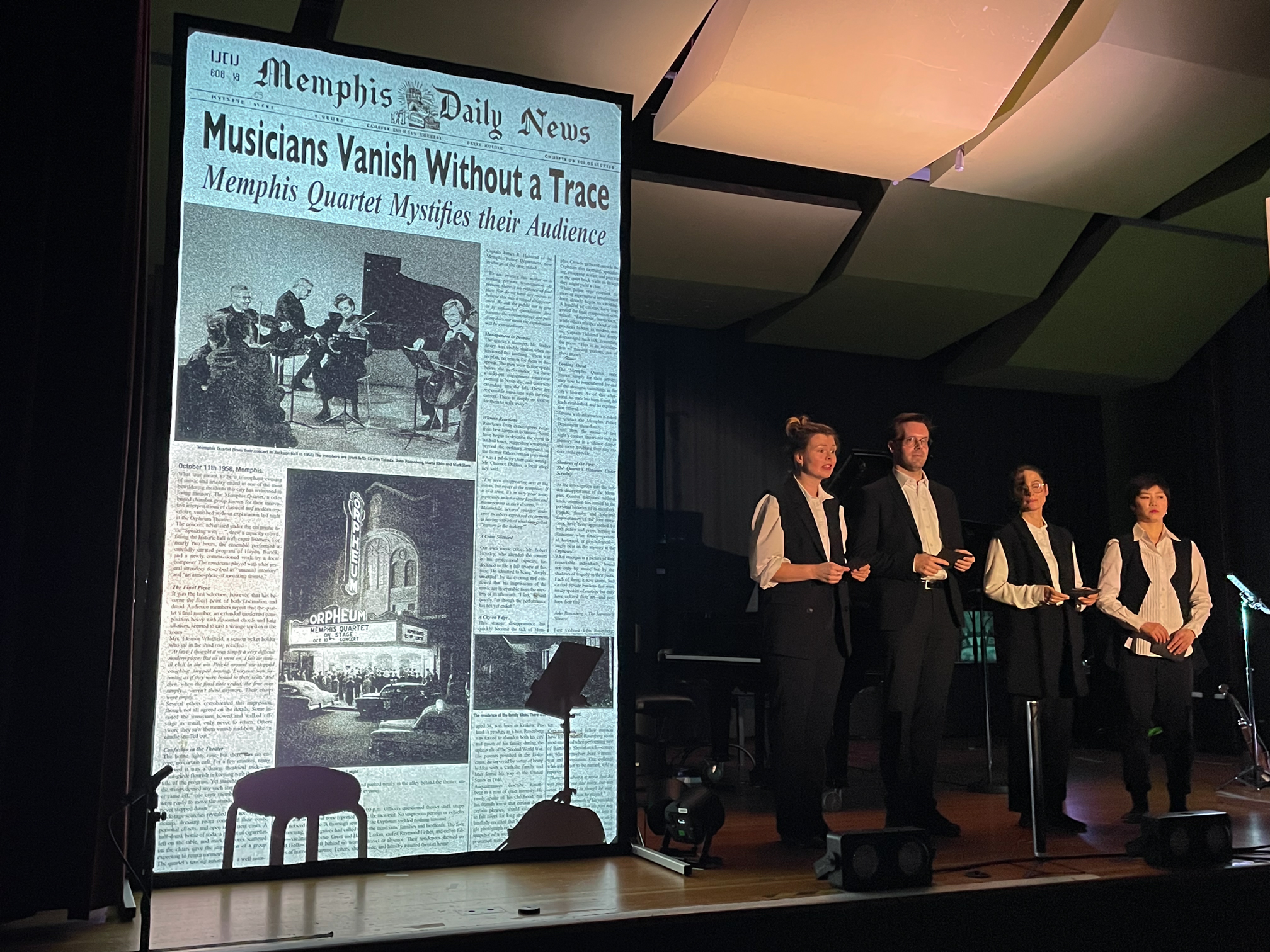 Was, wenn Musik die Geister ruft? gHOSTS ist kein gewöhnliches Konzert. Flex Ensemble und Post Theater knüpfen an Séance-Experimente des legendären Memphis Quartett an. Wie dieses historische Ensemble (1950er Jahre) suchen sie mit verschiedenen musikalischen und performativen Ansätzen den Dialog mit den Seelen der Verstorbenen. Mit Musikstücken unterschiedlichster Komponisten zwischen Schubert und Pesson verschwimmen die Grenzen zwischen Medium, Musiker*innen und Geistern: Wer ruft hier wen? Ein atmosphärischer Abend voller Rätsel, Erinnerung und Resonanz. Das musikalische Programm besteht aus: